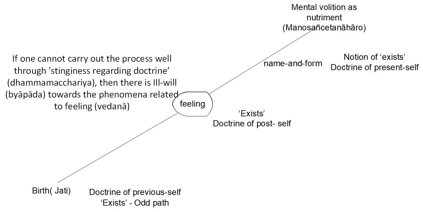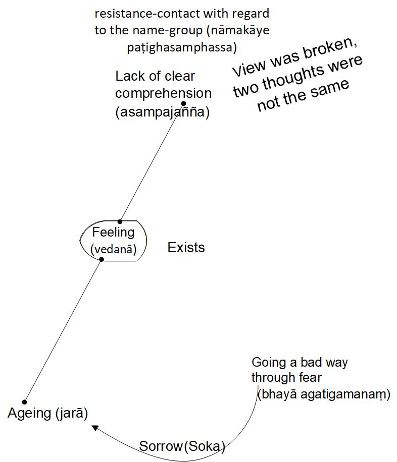 In diagram 2, the doctrines of ageing, feeling, lack of clear comprehension have arisen. Before that we went to feeling. Let's examine two points.