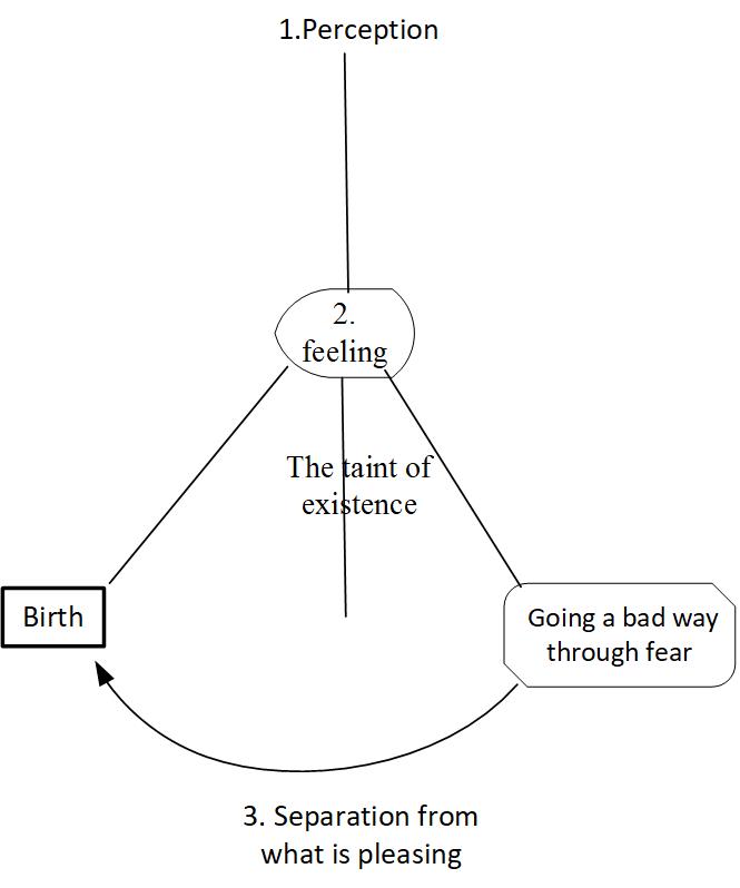In the case of the doctrines of 1. perception (saññā), 2. feeling (vedanā), 3. separation from what is pleasing are in the same line ‘separation from what is pleasing’ (piyehi vippayogo) is not visible to ‘perception’(saññā).